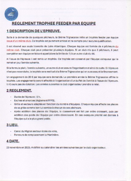 A la demande de quelques pêcheurs, la Brème Trignacaise initie un trophée feeder par équipe amical.