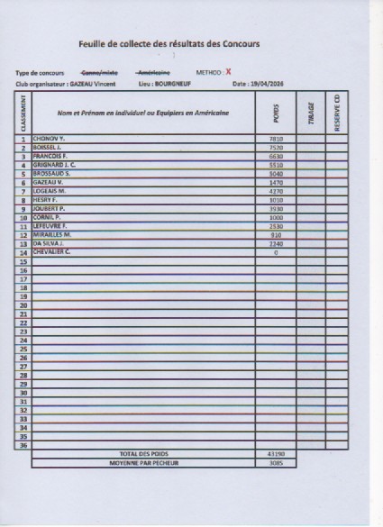Ci-joint les résultats du concours méthod qui s'est disputé à Bourgneuf le 19 avril.