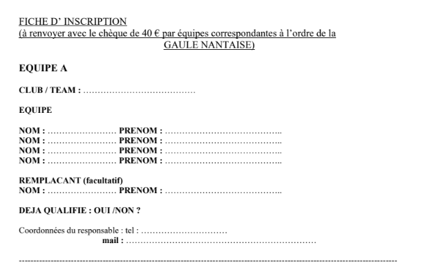 Chèque joint de 40 € avec inscription de l’équipe avant le 25/03/2026 (date maxi)