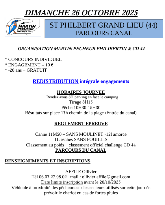 Le concours du 08 juin organisé par la Brème Trignacaise ne pourra se dérouler à Crossac les abords du chemin étant inutilisables (risques d'embourbement). Nous le déplaçons sur le parcours du Migron avec l'accord de l'UPPR. Voir affiche ci-jointe.